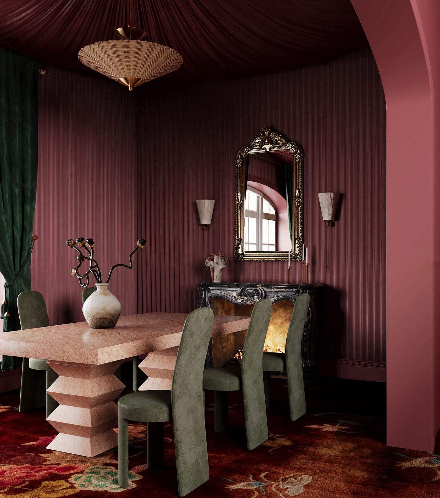 I’m still trying to understand how our friend Dabito thought to use leather to tent the ceiling and walls of this dining room (above)! But also, of course he did. Dabito continues to push me outside of my comfort zone, and this room is a beautiful example of a style that’s all-his-own.